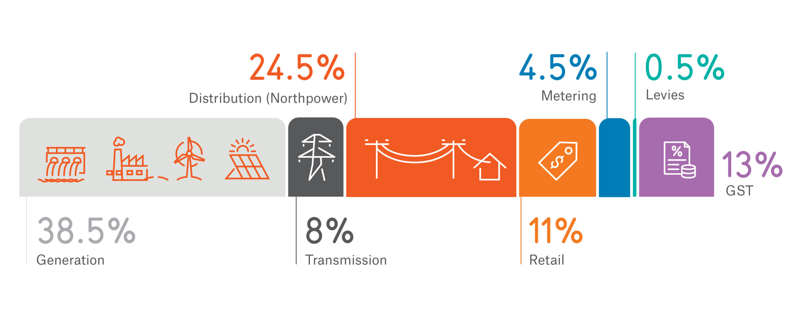 Your power bill comes from your electricity retailer and includes a range of costs bundled into one bill. These typically consist of: